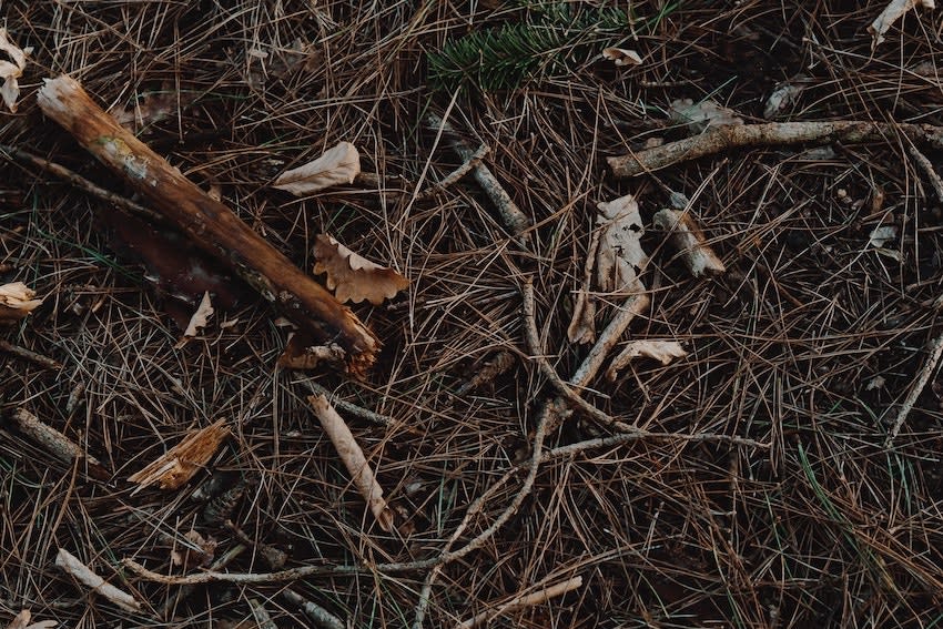 So you don’t waste precious (and expensive) soil, put a layer of organic material at the bottom of your garden bed. This helps fill a large portion of the space, and will eventually break down and enrich the soil. Organic material includes woody material, like dry wood, branches, leaves, and even logs, all of which you can source from your yard for free!